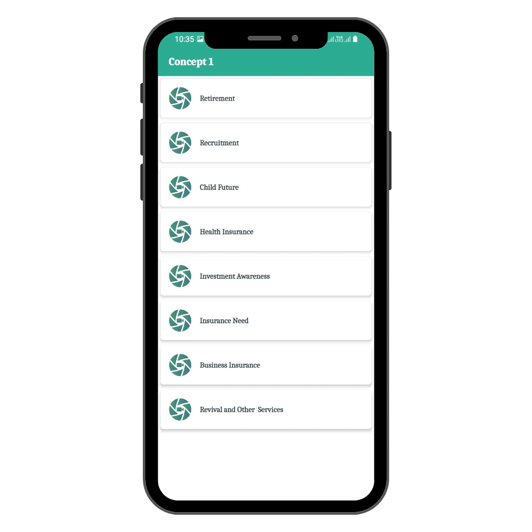 Ready to share videos on topics like retirement, child education, Health insurance, insurance, and investments, plus personalized greetings for clients.